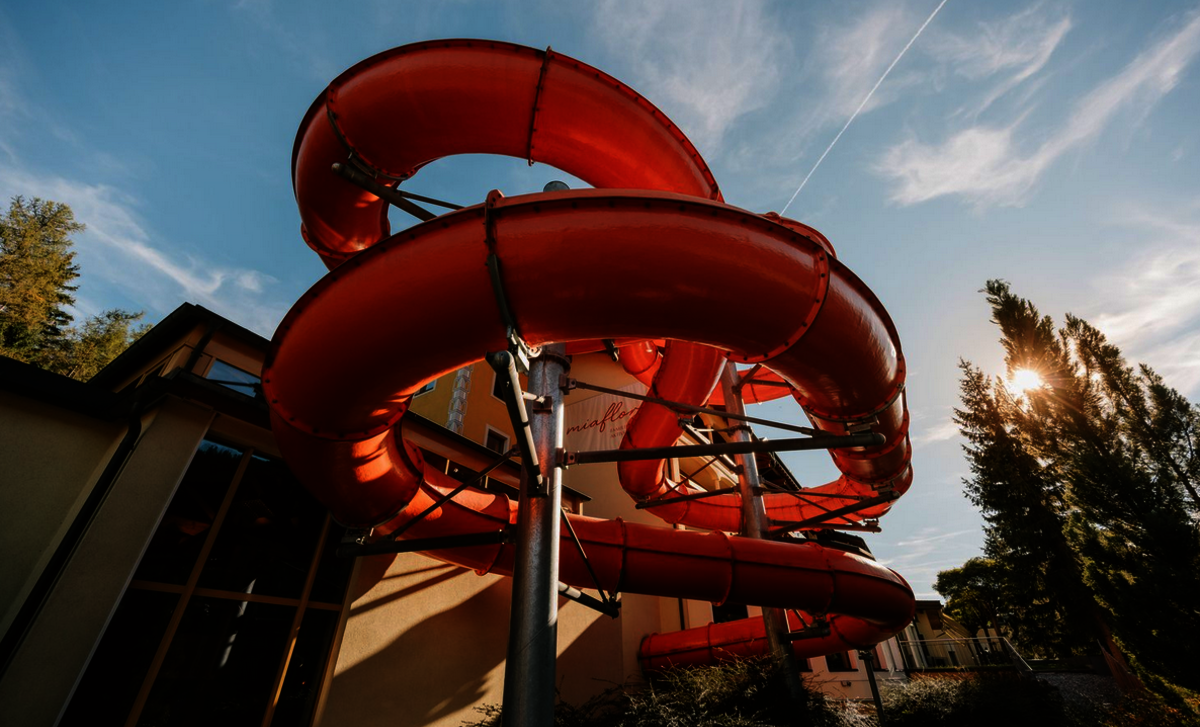 • 500 m² waterparadijs met 120 meter lange glijbaan